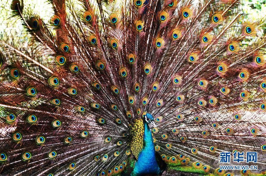 5月16日,在重慶市銅梁區(qū)永嘉鎮(zhèn)高龍村藍(lán)孔雀養(yǎng)殖場內(nèi),一只藍(lán)孔雀開屏。 新華社記者 王全超 攝 |