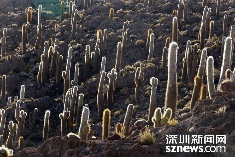 深圳新聞網(wǎng)訊   烏尤尼鹽沼中,有一個孤立的小山頭,猶如瀚海中的小島。島上長滿巨大的仙人柱,據(jù)說有的已經(jīng)生長了上千年。這種形狀各異、耐鹽堿、耐干旱的熱帶植物豐富了鹽沼的風(fēng)光,構(gòu)成絕無僅有的世界奇觀。 李仁奇 攝