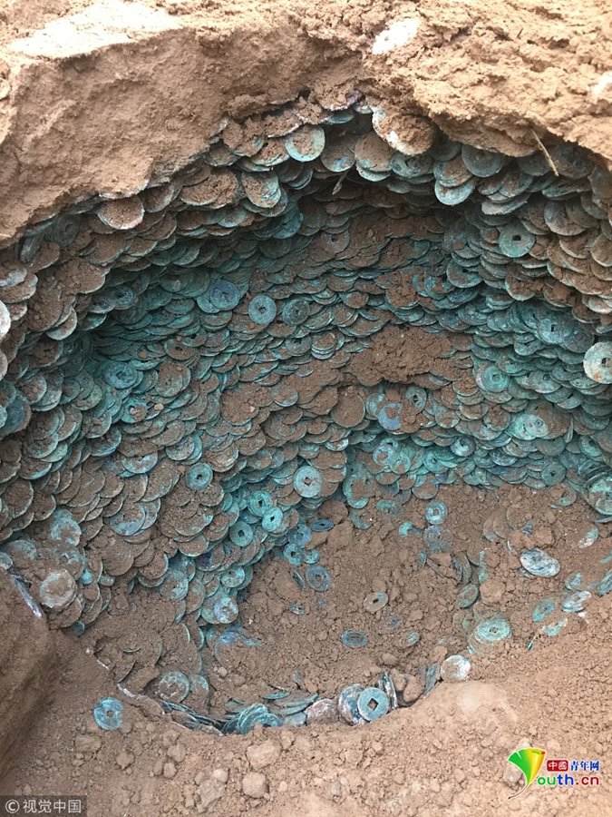 2018年11月9日,陜西渭南,白水一工地發(fā)現(xiàn)大量古幣,共清理發(fā)掘古幣920斤、約10萬枚。經(jīng)初步鑒定,這些古幣多為北宋時期錢幣,初步判斷為一般文物,對研究當(dāng)?shù)亟?jīng)濟等有一定價值。圖片:視覺中國。文字:華商報