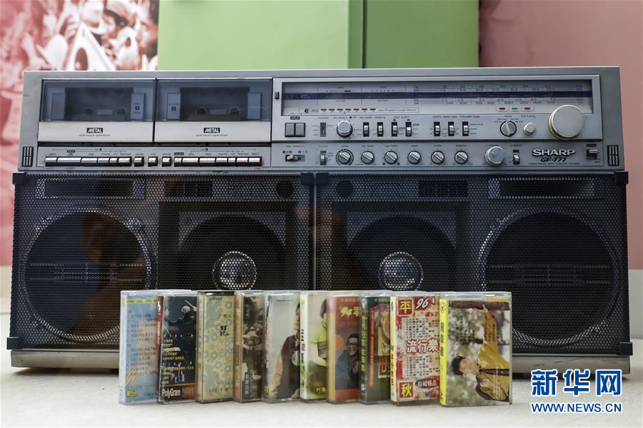 這是“歷史巨變”展區(qū)展示的老式收錄機(jī)和磁帶(11月15日攝)。