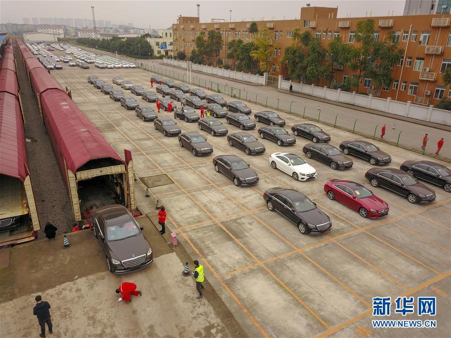 當日,首趟中歐班列商品車專用車運輸國際班列搭載的112臺奔馳品牌進口整車在重慶順利完成通關(guān)。
