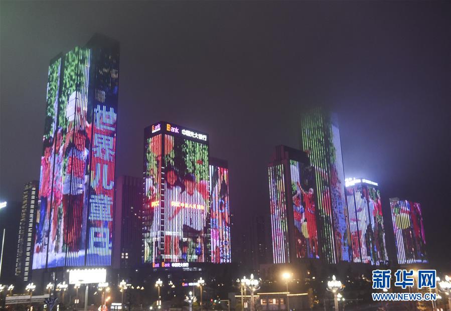 11月20日,貴陽(yáng)市舉辦世界兒童日主題活動(dòng),觀(guān)山湖區(qū)金融城的大樓被點(diǎn)亮。 新華社記者 陶亮 攝
