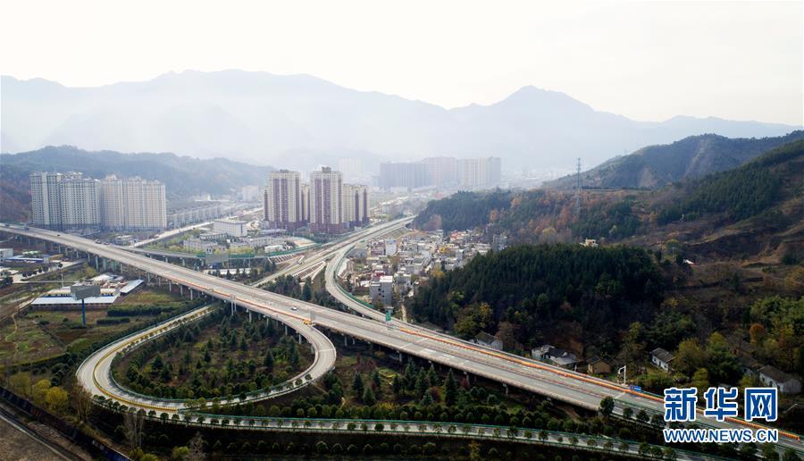 11月20日拍攝的水陽高速公路與福銀高速公路相接的樞紐互通式立交(無人機(jī)拍攝)。 近日,記者從陜西省交通建設(shè)集團(tuán)公司了解到,陜西柞水至山陽高速公路已全線貫通即將通車。據(jù)介紹,(柞)水(山)陽高速公路全長78.8公里,開通后將實現(xiàn)包茂高速、福銀高速在陜南商洛地區(qū)的連接,開辟出秦嶺南麓的一條橫向高速大通道,對完善陜西高速公路路網(wǎng)結(jié)構(gòu)、促進(jìn)陜南區(qū)域經(jīng)濟(jì)發(fā)展、加快山區(qū)群眾脫貧致富具有重要意義。 新華社記者劉瀟攝