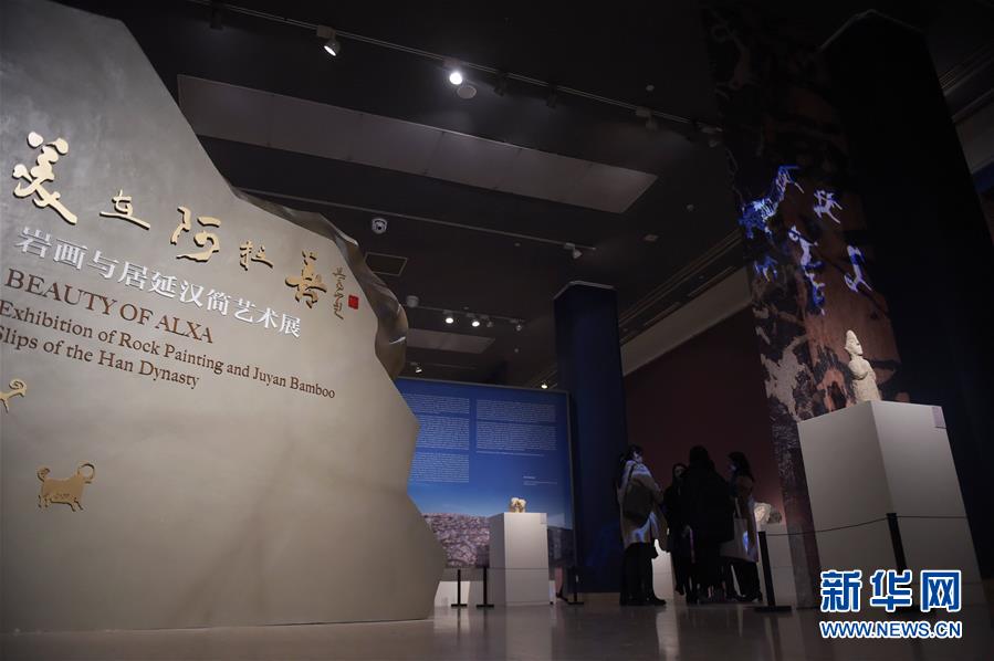 11月21日,觀眾在中國美術(shù)館參觀“美在阿拉善—巖畫與居延漢簡藝術(shù)展”。