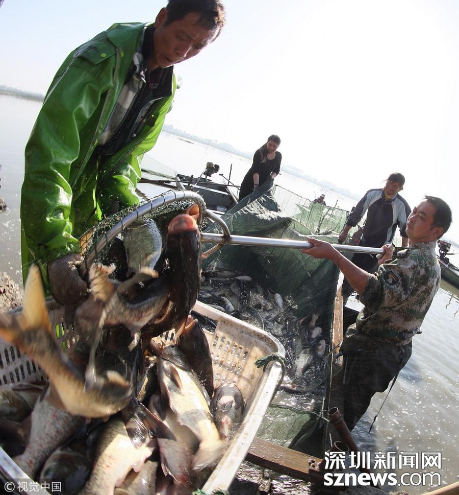 深圳新聞網訊 江蘇揚州,邗江區(qū)公道鎮(zhèn)南湖村南湖水域,專業(yè)捕撈隊人員已集結到胡登強養(yǎng)殖戶家魚塘進行捕撈作業(yè)。據(jù)捕撈隊員沈昌田介紹,近期隨氣溫轉冷,魚的銷量增加,水產養(yǎng)殖戶紛紛捕魚上市,為趕在上午10時將魚運到水產批發(fā)市場銷售,專業(yè)捕撈隊員們天不亮就起床,下河塘布圍網、收網撈魚、過秤裝車。一周捕撈作業(yè)有三四次之多,一次捕撈多達上萬斤魚。公道鎮(zhèn)有水面灘涂6.5萬畝,是魚、蝦、蟹、等水產品養(yǎng)殖的理想場所。