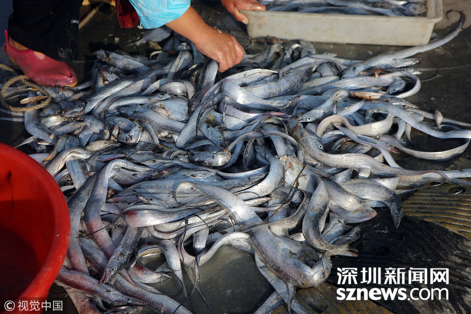 深圳新聞網訊 2018年9月2日,山東日照,在山海張家臺漁港和大泉溝漁港,一大早,碼頭上就人聲鼎沸、熱鬧非凡。許多小馬力的漁船已經返航,魚蝦蟹堆滿了船板。