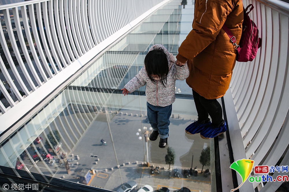 初生牛犢不怕虎,不少兒童走在玻璃吊橋上若無(wú)其事,大步流星地往前走,而其身后的家長(zhǎng)則是緊貼著一側(cè)的欄桿,雙手緊握扶手挪步前行,雙眼一直不敢往下看。全程走下了,游客的手掌布滿(mǎn)了冷汗。