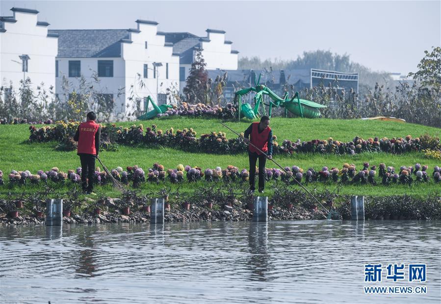 11月28日,林城鎮(zhèn)北湯村河長(zhǎng)黃雙喜(右)在施家邊河打撈水面漂浮物。近年來,北湯村全面推進(jìn)“五水共治”,停止河道內(nèi)的水產(chǎn)養(yǎng)殖,并進(jìn)行河道清淤,整治周邊環(huán)境,另外還結(jié)合北湯生態(tài)園旅游項(xiàng)目,發(fā)展旅游經(jīng)濟(jì),打造水上娛樂設(shè)施?,F(xiàn)在北湯村施家邊河道水質(zhì)清澈,環(huán)境秀美,每年為北湯村吸引游客18萬人次。 新華社記者 徐昱 攝