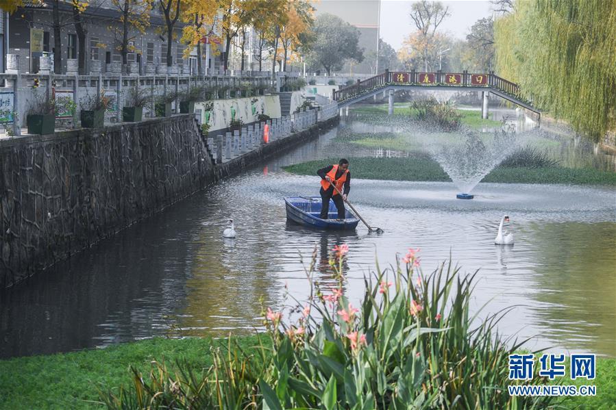 11月28日,長(zhǎng)興縣虹星橋鎮(zhèn)港口村東港內(nèi),河長(zhǎng)孫根法在打撈水面漂浮物。東港全長(zhǎng)1500米,環(huán)繞港口新村。2012年,新村建成后,港口村通過加固河岸、清理河道、種植浮草等方式對(duì)東港進(jìn)行生態(tài)治理,并由該村黨總支書記孫根法擔(dān)任河長(zhǎng),定期開展巡查,引導(dǎo)村民自覺維護(hù)河道整潔。 新華社記者 徐昱 攝