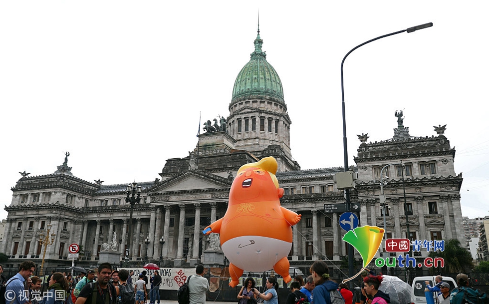 當(dāng)?shù)貢r(shí)間2018年11月29日,阿根廷布宜諾斯艾利斯,“特朗普寶寶”現(xiàn)身。11月30日至12月1日,二十國集團(tuán)(G20)領(lǐng)導(dǎo)人第十三次峰會(huì)將在阿根廷首都布宜諾斯艾利斯舉行。