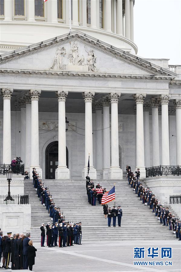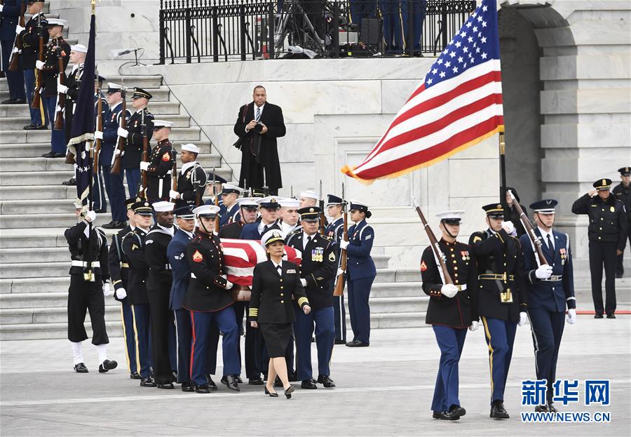 12月3日,在美國首都華盛頓,美國前總統(tǒng)喬治·赫伯特·沃克·布什(老布什)的靈柩抵達(dá)國會(huì)大廈。