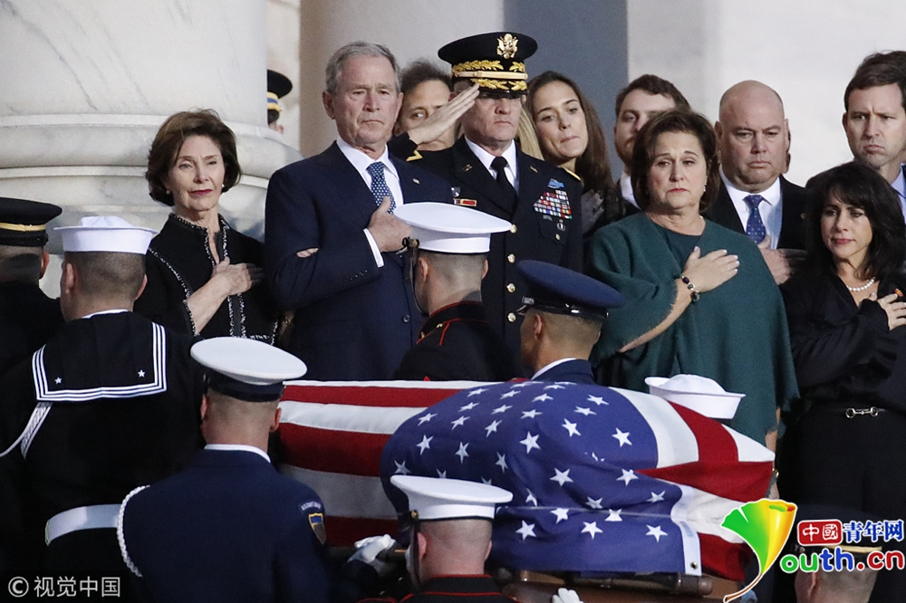 老布什靈柩安放在國會(huì)圓形大廳 小布什出席儀式