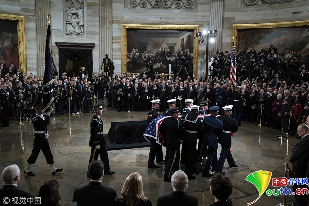 當(dāng)?shù)貢r(shí)間2018年12月3日,美國前總統(tǒng)老布什的靈柩送抵美國國會(huì)大廈,正式的追悼儀式就此開始。