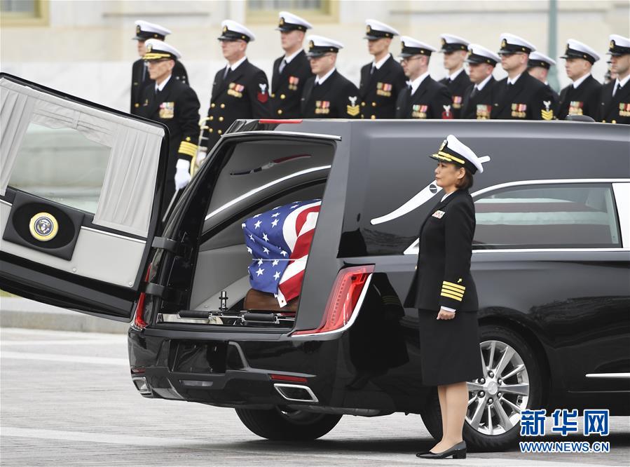 12月5日,在美國首都華盛頓,美國前總統(tǒng)喬治·赫伯特·沃克·布什的靈柩離開國會(huì)大廈。