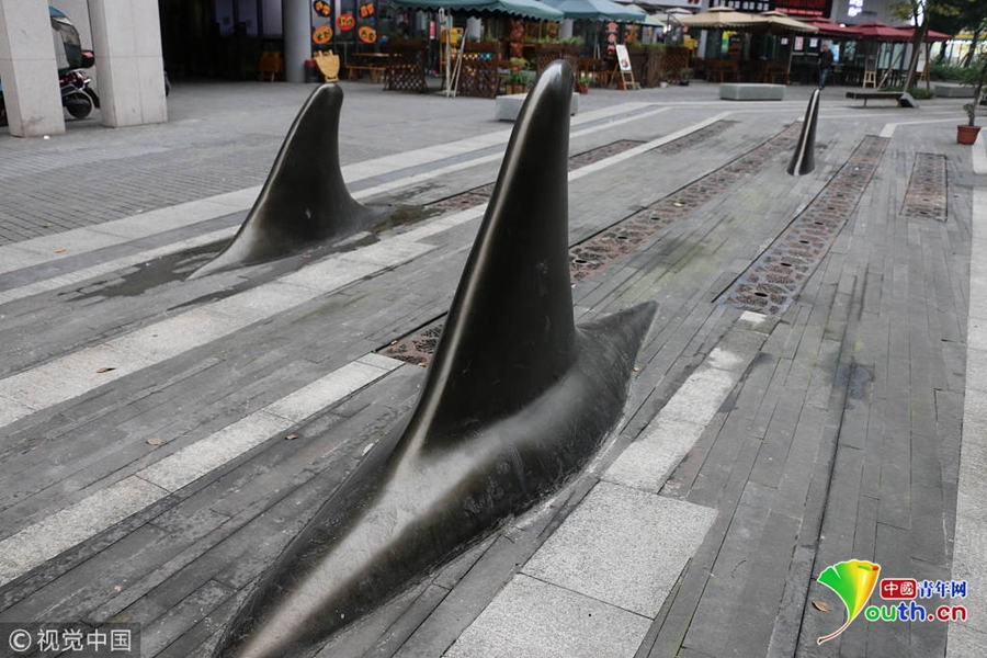 對于這種設(shè)計(jì),不少市民覺得比較精巧的,遠(yuǎn)遠(yuǎn)地望去,就好像在海面上露出魚鰭的一群鯊魚,不僅可以防止被車輛占道,而且還有點(diǎn)裝飾的效果。