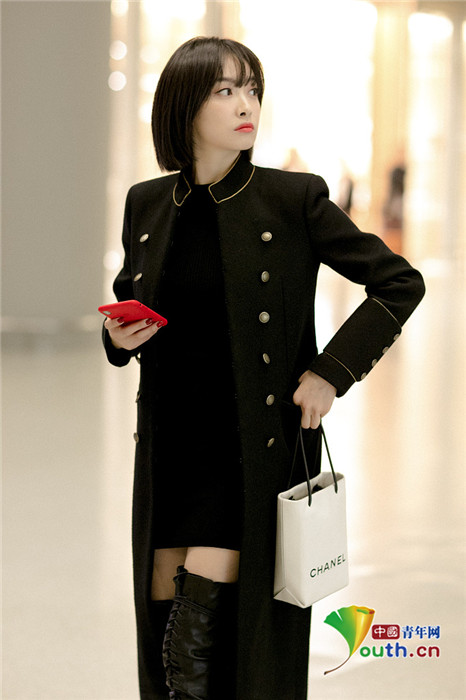 2018年12月6日,宋茜現(xiàn)身機場,從上海飛往北京。她換了時髦的新發(fā)型,身穿黑色短裙外塔長款風衣,配上一雙高筒靴,美腿隱現(xiàn)霸氣不失性感,半路獲粉絲送卡片翻來覆去認真品讀。