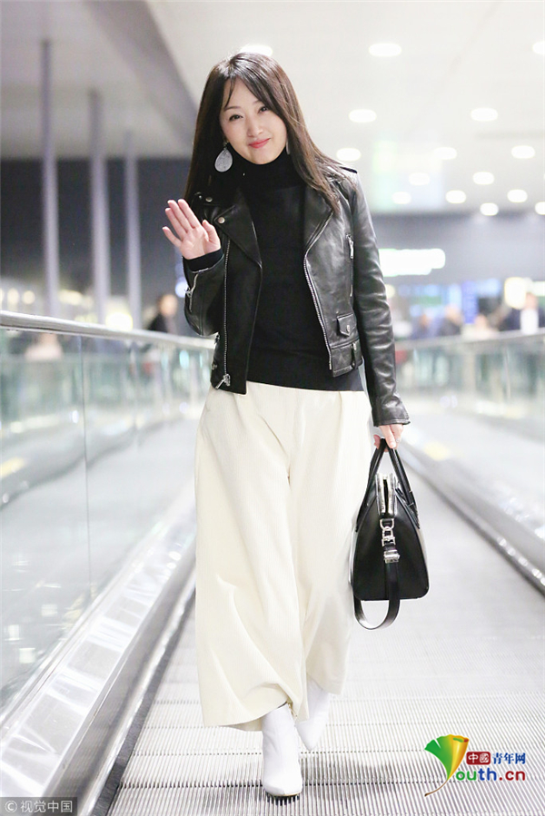 12月9日,上海,楊鈺瑩現(xiàn)身上海虹橋機場,她身著黑色皮衣的她搭配白色直筒褲,手提大牌包優(yōu)雅知性,長發(fā)披肩溫柔甜美似少女,見跟拍主動揮手示好,保養(yǎng)得當(dāng)?shù)乃笮阊┌准∧w,不顯年紀(jì)!