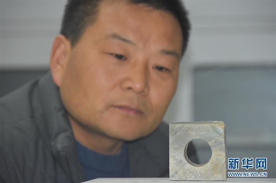 吳山祭祀坑內(nèi)出土的祭祀用的男女玉人(左為男,右為女,攝于12月7日)。 新華社記者都紅剛攝