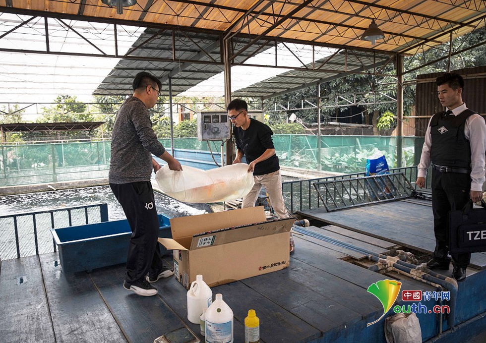 中國(guó)青年網(wǎng)2018年12月12日訊 由于這條錦鯉價(jià)格昂貴,錦鯉的原主人——“長(zhǎng)彥觀賞魚漁場(chǎng)”淘寶店主李長(zhǎng)彥請(qǐng)安保一路護(hù)送錦鯉。負(fù)責(zé)護(hù)送的天尊安保小哥透露,之前曾護(hù)送過(guò)明星、政要,也護(hù)送過(guò)貴重物品,但這是第一次護(hù)送一條魚。