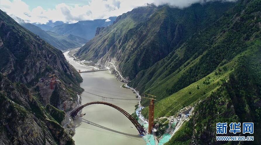 9月28日無人機(jī)拍攝的川藏鐵路拉林段重點(diǎn)標(biāo)志性工程藏木特大橋。當(dāng)日,隨著最后一節(jié)鋼管拱的對位和鎖定完畢,川藏鐵路拉林段藏木特大橋成功合龍,標(biāo)志著大橋主體結(jié)構(gòu)施工取得了關(guān)鍵性勝利。藏木特大橋由中國中鐵廣州局集團(tuán)承建,拱高112米,橋橫跨雅魯藏布江峽谷,水深66米。新華社記者普布扎西攝