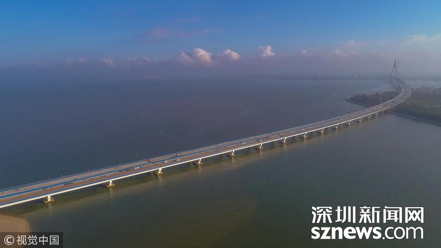 深圳新聞網(wǎng)訊 2018年12月5日,海口,高空航拍橫跨??诒备蹗u的鋪前大橋。 據(jù)了解,鋪前大橋是目前國內(nèi)抗震設(shè)防烈度最高、設(shè)計(jì)基本風(fēng)速最大,且跨越地震帶活動(dòng)斷層的跨海大橋,是國內(nèi)首座跨地質(zhì)斷裂帶的大型橋梁??偼顿Y約30.1億元,該將在今年年底建成通車,將加快海南自貿(mào)港建設(shè)而助力。