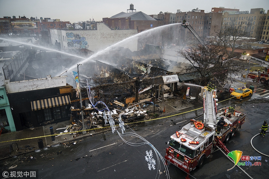 美國紐約發(fā)生大火吞噬六家商鋪 消防員撲滅火災(zāi)余燼