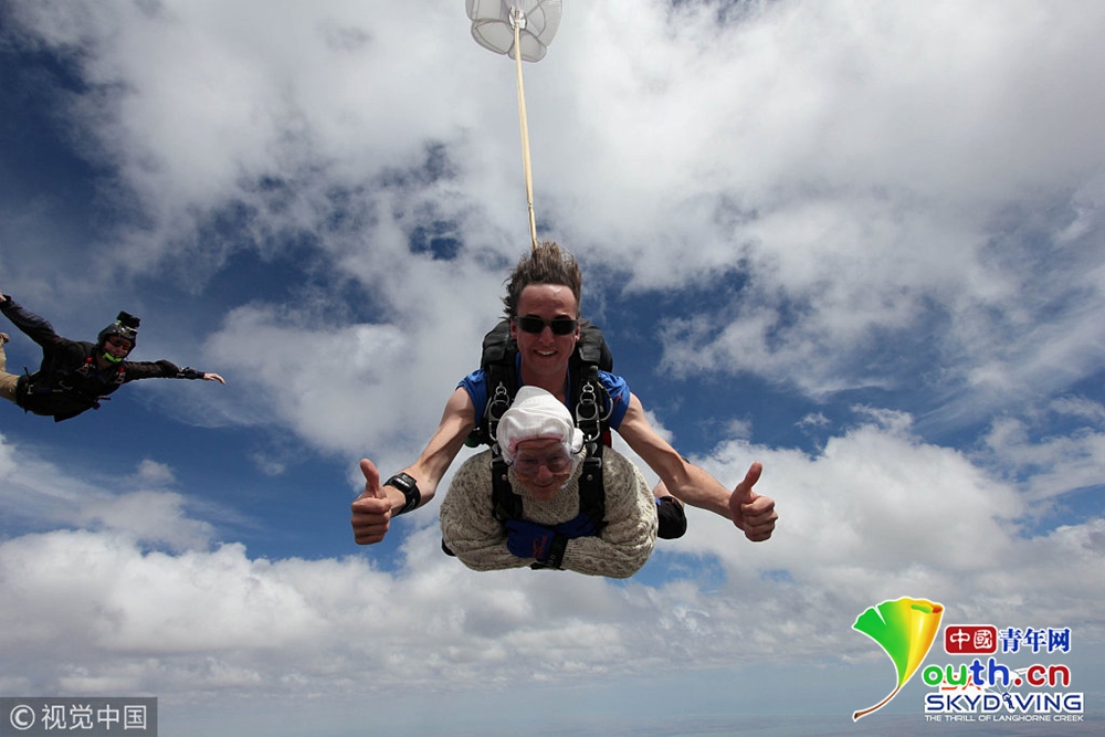 澳洲102歲奶奶玩高空跳傘 背后原因很暖心