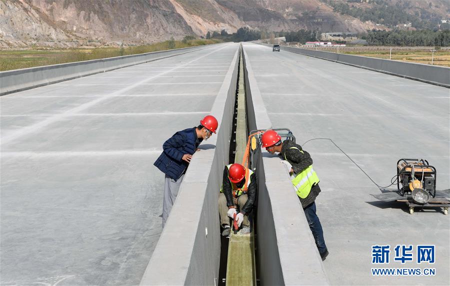 12月15日,中鐵上海局集團公司的施工人員在東格高速公路土建項目中進行橋面附屬工程作業(yè)。