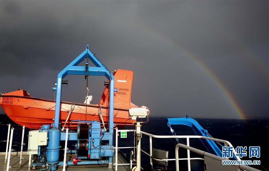 考察隊(duì)員在“沈括”號(hào)上布放“彩虹魚”著陸器(12月15日攝)。