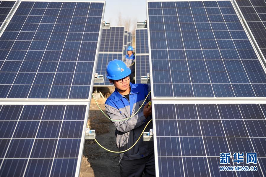 近年來(lái),河北省海興縣積極探索光伏產(chǎn)業(yè)扶貧新路,采用“政府+企業(yè)+貧困戶”的合作模式,整合流轉(zhuǎn)全縣3800余畝鹽堿荒地,建設(shè)了24個(gè)村級(jí)光伏發(fā)電站,提高鹽堿荒地利用效率和貧困戶收益。 新華社記者 牟宇 攝