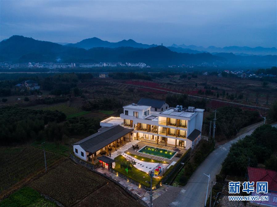 夜色中的民宿“初憶小院”(12月19日攝)。該民宿是河橋鎮(zhèn)“90后”女孩章淑貞開辦的,民宿融入了大量的現(xiàn)代建筑設計風格,深受年輕人的喜愛。 新華社記者 徐昱 攝