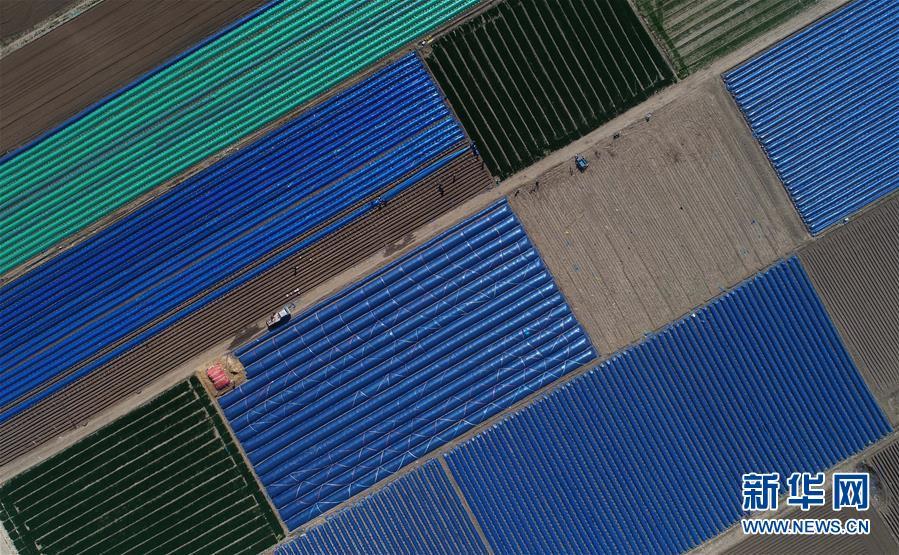 2018年4月20日,唐山市豐潤區(qū)新軍屯鎮(zhèn)新軍屯村農(nóng)民在播種生姜。 大地之色,俯仰之間;壯美山河,是我的祖國。2018年,新華社記者操縱無人機(jī)“飛閱”華夏大地,在最美的時節(jié),定格下她的色彩斑斕。 新華社記者 楊世堯 攝