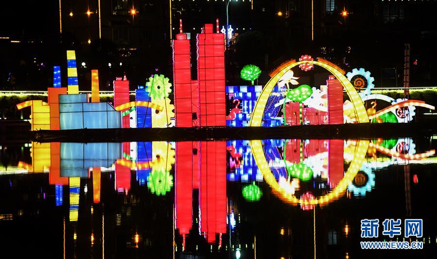 荔浦河中的花燈(12月17日攝)。  新華社記者張愛林?jǐn)z