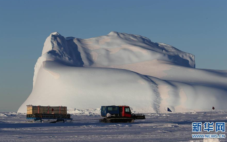 雪地車隊拉著物資從“雪龍”號駛向中山站(12月2日攝)。 新華社記者 劉詩平攝