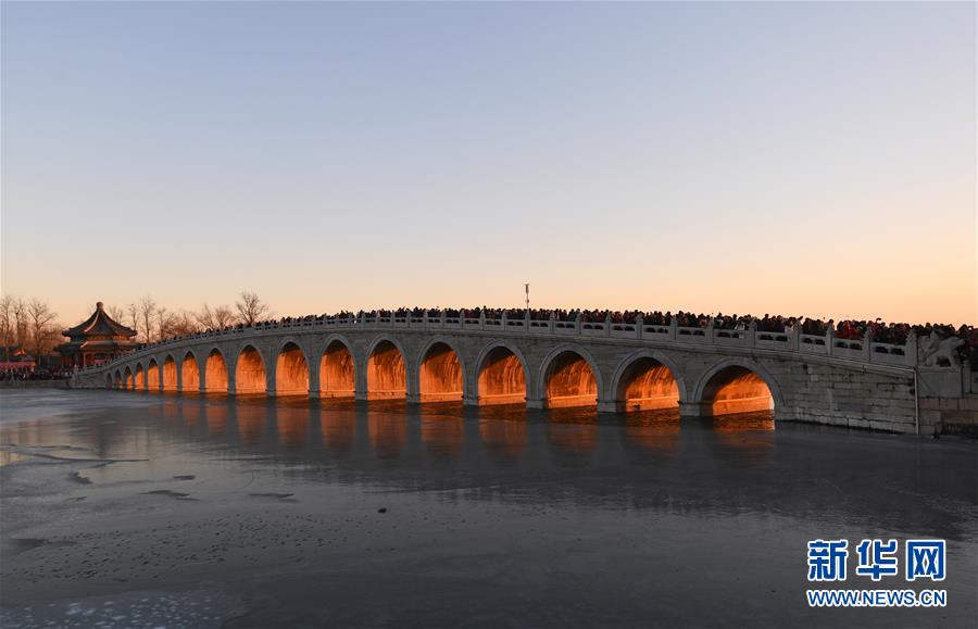 這是12月23日拍攝的頤和園十七孔橋“金光穿洞”美景。 當(dāng)日,北京頤和園十七孔橋出現(xiàn)“金光穿洞”美景,吸引許多游客和攝影愛好者前來觀賞拍攝。 新華社記者陳曄華攝