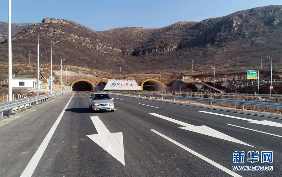 12月16日,一輛汽車行駛在京秦高速公路二期工程河北玉田境內(nèi)的鳳凰頂隧道路段(無人機(jī)拍攝)。
