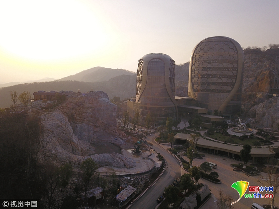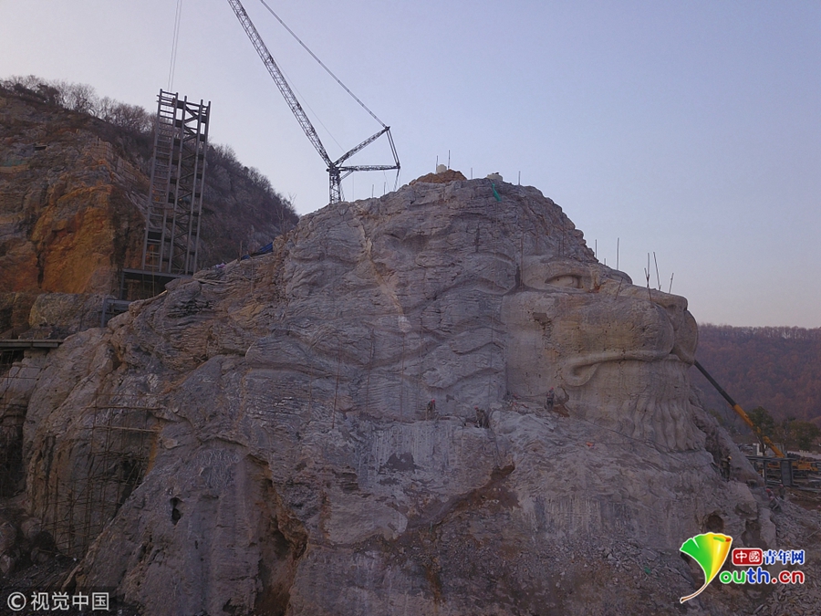廢棄工地建蜂巢酒店 百名工人用時(shí)半年雕出巨型山體石獅