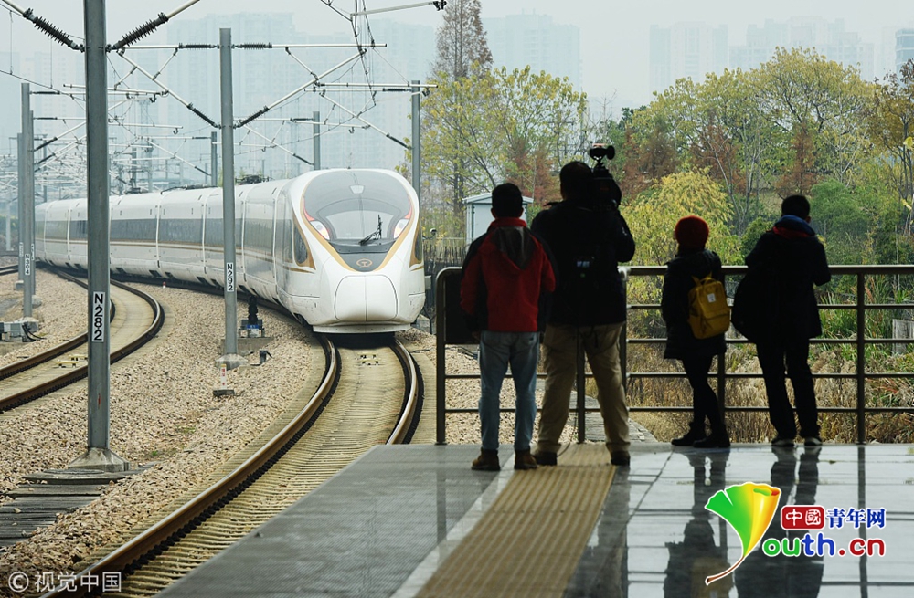 12月25日,杭黃高鐵D9551次首發(fā)列車即將從杭州東站駛出。
