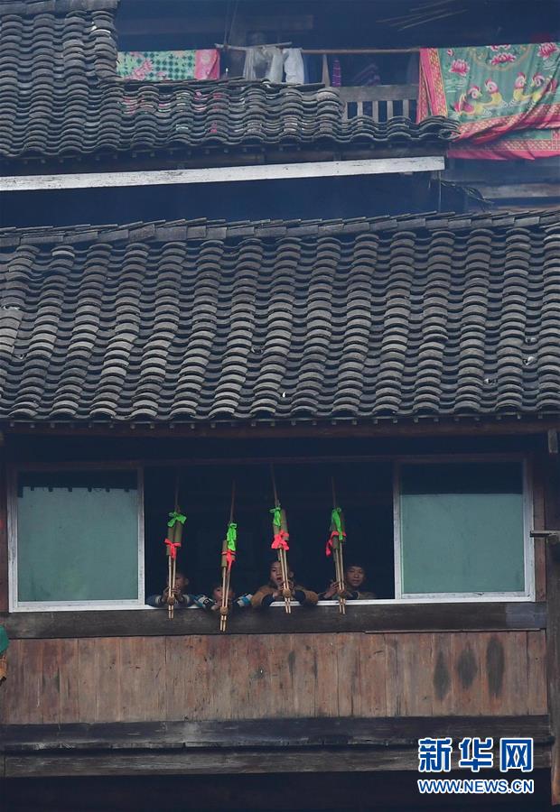 幾名少年在家里吹奏蘆笙(1月15日攝)。