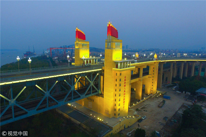 2016年10月28日晚,服役48年的南京長江大橋正式封閉,進(jìn)入合同工期長達(dá)27個月的改造提升期。身為我國橋梁建設(shè)領(lǐng)域的扛鼎之作,南京長江大橋的此次封閉改造牽涉到公路繁忙、鐵路風(fēng)險、技術(shù)攻關(guān)、文物保護(hù)等諸多難點,不僅影響面廣,而且社會關(guān)注度極高。如今,隨著整個工程進(jìn)入收尾階段,即將于2018年12月底正式通車。圖為2018年12月13日,夜幕降臨,南京長江大橋歸位后的玉蘭花燈重新點亮。大橋玉蘭花燈柱共有299根,每根燈柱上有5盞玉蘭花燈,1大4小,一共1495盞。