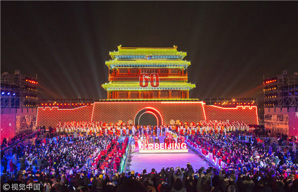2017年12月31日,北京,2018北京新年倒計(jì)時(shí)活動暨北京冰雪文化旅游節(jié)開幕式現(xiàn)場。倒數(shù)60秒