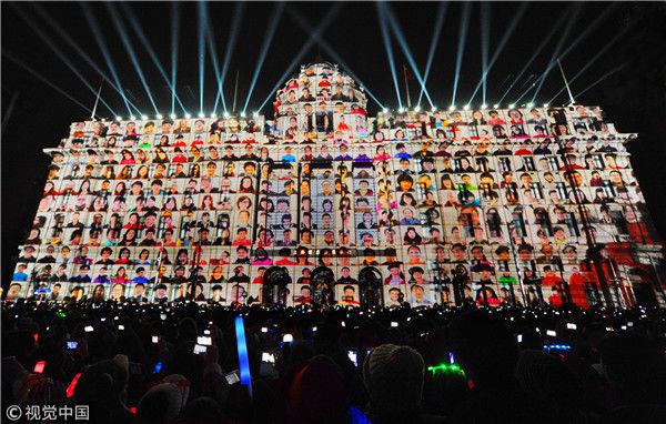 2012年12月31日,上海,“2013上海迎新年倒計時晚會”當晚在黃浦江畔的外灘金融廣場上舉行。最大亮點的4D燈光秀綜合運用計算機圖形技術(shù)、燈光投影技術(shù)、激光技術(shù)等多種技術(shù)表現(xiàn)手段,利用最新的科技和最新的藝術(shù)形式作為載體,讓百年建筑活過來“跳舞”。