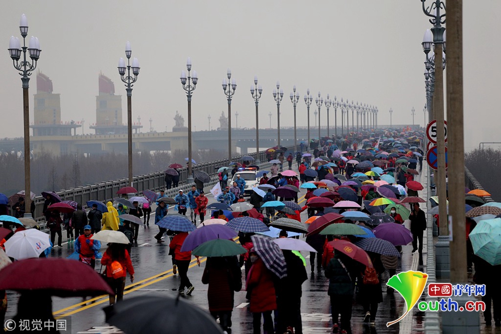 2018年12月26日,南京。南京長江大橋維修改造工程竣工通車在即,12月26日至28日三天向公眾開放,12月26日,“市民開放日”首日,早晨九時(shí)許,雖然下著雨,但記者在南京長江大橋入口和橋上看到,如織的市民打著傘來到大橋,整個(gè)橋上全是撐傘觀看的市民,足有萬人,十分壯觀。