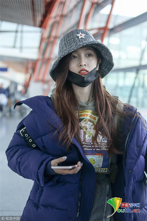 1月1日,北京,吳宣儀現(xiàn)身機場。外帶著漁夫帽的她嘟嘴顯可愛,裹著厚重羽絨服認(rèn)真過冬超保暖。