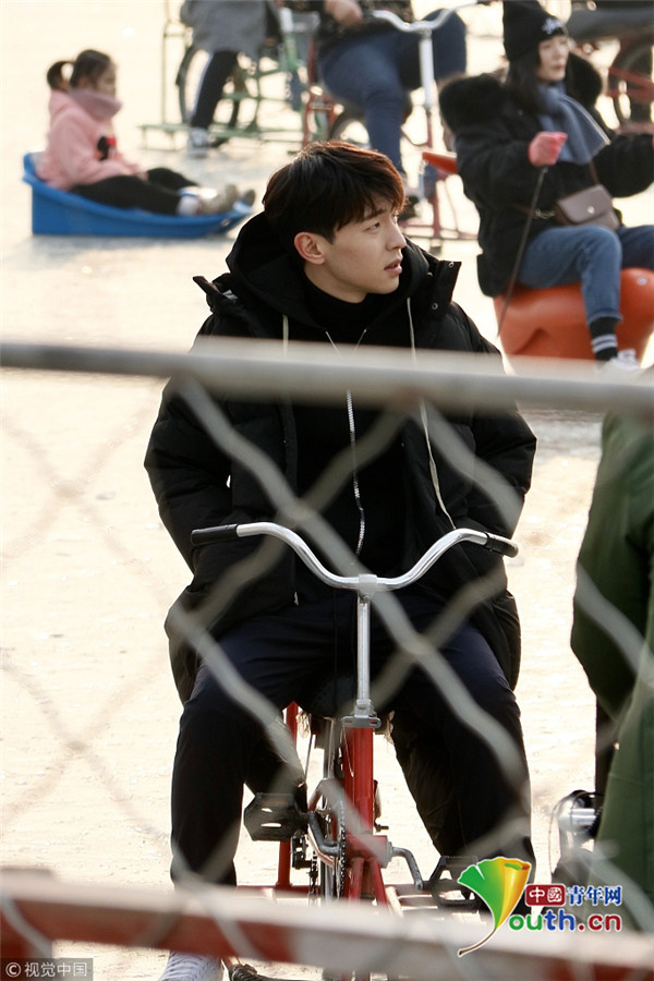 2019年1月9日,北京,鄧倫、馬思純現(xiàn)身后?;鶊?chǎng),騎冰車拍攝新劇《加油你是最棒的》。寒冷的北京,二人身著單薄的劇中服裝現(xiàn)身拍攝片場(chǎng),不顧嚴(yán)寒超敬業(yè)。