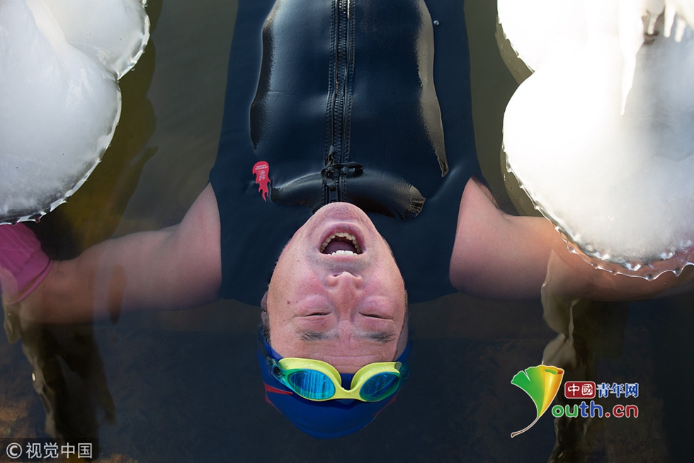 2019年1月10日至11日,長(zhǎng)春,65歲的張敏石是一位冬泳愛(ài)好者,他經(jīng)常一邊冬泳一邊吟詩(shī)或者唱戲。他自稱(chēng)曾患上腦梗腦萎縮,但他堅(jiān)持鍛煉,現(xiàn)在腦?;竞昧?。堅(jiān)持冬泳16年,他已背會(huì)600多首古詩(shī)詞。因?yàn)檫@種獨(dú)特的鍛煉方式,張敏石早已成為南湖里的明星,今年他繼續(xù)用這種鍛煉方式,入冬后準(zhǔn)時(shí)出現(xiàn)在南湖冬泳區(qū)。
