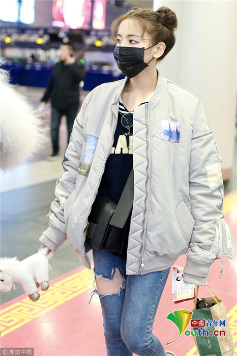 2019年1月14日,北京,楊超越現(xiàn)身機(jī)場。她扎哪吒頭活力十足,甩玩偶淘氣回眸,穿破洞褲露美腿,披面包服似自帶鼓風(fēng)機(jī)。