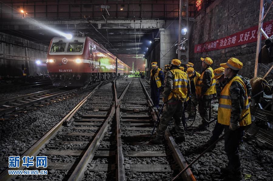 1月15日凌晨,中鐵十一局施工人員在西安站改現(xiàn)場(chǎng)等待列車(chē)通過(guò),準(zhǔn)備進(jìn)行施工。新華社記者陶明攝