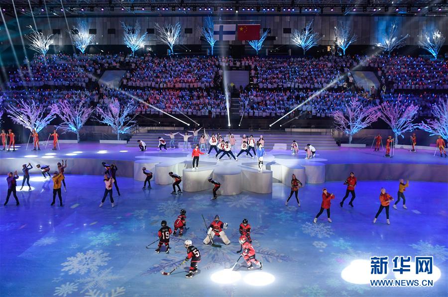 1月15日,演員在開幕式上表演。 當(dāng)日,“2019中芬冬季運動年”開幕式在北京首鋼冰球館舉行。 新華社記者申宏攝