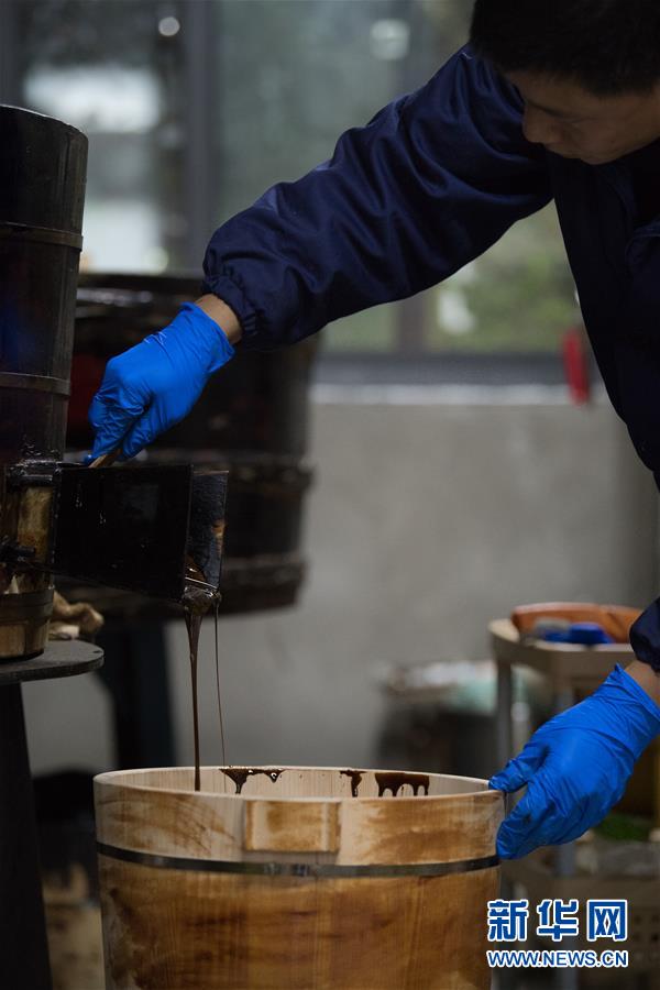 1月15日,吳榮強在龍泉市牛頭嶺村“七分醉”工作室精制大漆。 新華社記者翁忻旸攝
